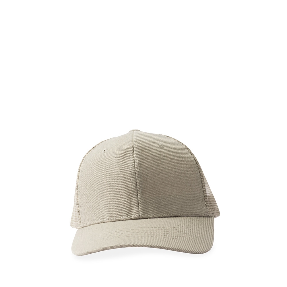 Boné de aba curva confeccionado em poliéster e tela respirável em nylon. Possui fecho plástico de fácil ajuste na parte posterior.