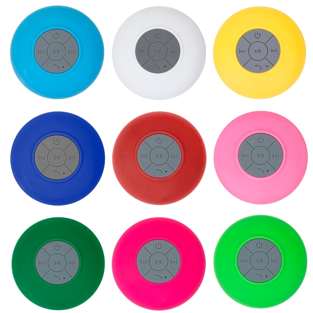 Caixa de Som Multimídia à prova D’Água emborrachada com ventosa(pode ser removida). Possui play/pause no centro e botão com desenho de telefone deve ser apertado para atender ligações. Compátivel com Iphone, Ipad, Ipod, aparelhos de celular e tablets. Acompanha cabo.